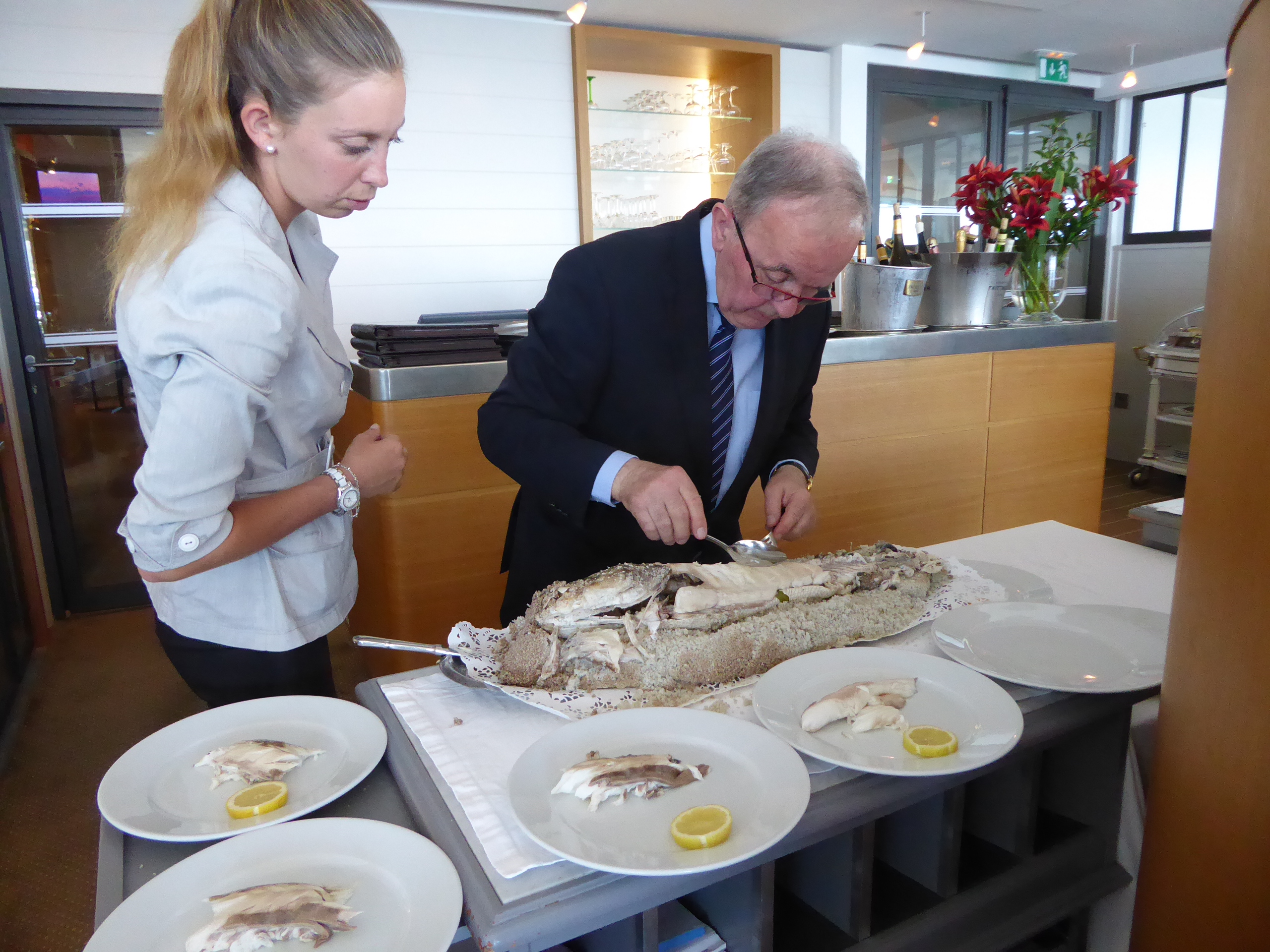 Serving lunch at l'Ocean, Port Lin - bas en sal croute
